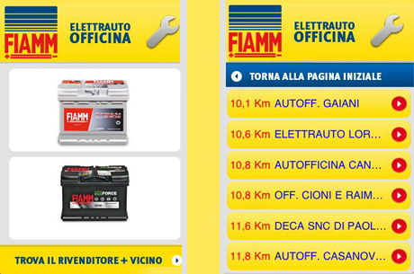 L’applicazione consente di individuare l’officina e l’elettrauto più vicino – tra le oltre 1500 presenti sul territorio nazionale aderenti all’iniziativa ‘FIAMM Energy Check’ – per essere guidati fino ad esso ed effettuare il controllo gratuito della propria batteria.