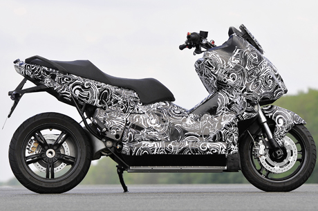 A differenza dei maxi-scooter dotati di motore endotermico, il Concept vehicle non ha un telaio centrale. Al suo posto si trova l’involucro della batteria, in alluminio, nel quale è alloggiata l’elettronica di controllo, che funge anche da elemento portante. All’involucro della batteria sono collegati il supporto del cannotto di sterzo, il telaietto posteriore e il monobraccio posteriore a cui è accoppiato l’ammortizzatore posteriore, montato in senso orizzontale.