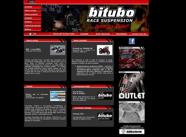 Nella Home del sito sono presenti le ultime News Racing e News Prodotti,: le prime permettono di essere sempre al corrente dei risultati dei piloti Bitubo nei campionati delle varie categorie; le seconde, invece, informano dei nuovi prodotti disponibili. I clienti e i rivenditori Bitubo possono essere aggiornati via mail di tutte le nostre novità iscrivendosi alla Newsletter.