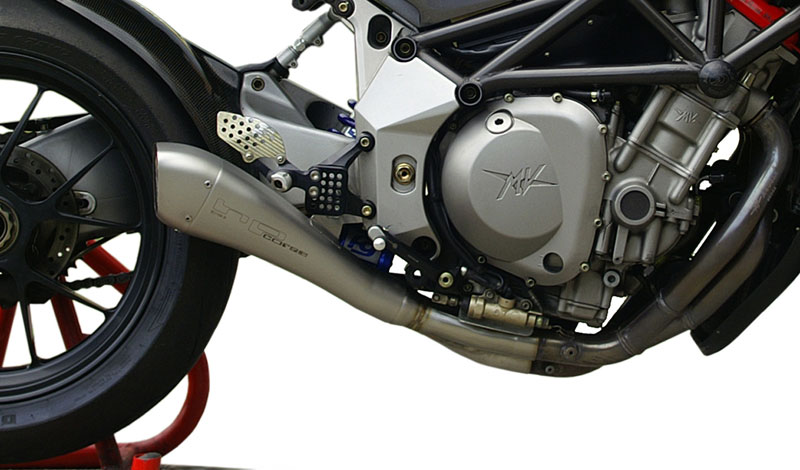 Sinuoso, elegantissimo ed aggressivo insieme, lo scarico Hydroform raggiunge sulla Brutale una purezza estetica assoluta per rendere parte di un progetto possibile i desideri dei centauri più esigenti.