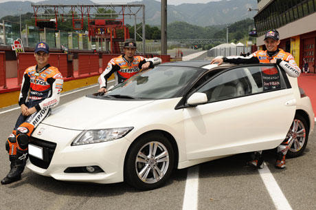 Shuhei Nakamoto – Vice Presidente Esecutivo di Honda Racing Corporation ‘Siamo felici di supportare Honda Auto durante la stagione 2011. La CR-Z è una vettura sportiva con un ottimo design e il matrimonio tra la tecnologia ibrida delle vetture Honda e la nostra tecnologia dedicata alle corse del Moto GP rappresenta un’unione perfetta’.