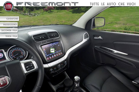 Disponibile in italiano e inglese e sviluppata dal brand Fiat in collaborazione con Seac02 (azienda leader nello sviluppo di software di realtà virtuale e “augmented reality”), l’applicazione sfrutta le potenzialità tecnologiche del tablet Apple offerte dal giroscopio integrato. Attraverso fotografie sferiche a 360° è possibile salire a bordo di Fiat Freemont e, muovendo l’iPad, scoprire le caratteristiche e le dotazioni, accomodandosi virtualmente a bordo sul sedile del guidatore o del passeggero, della seconda o della terza fila. Orientando quindi l’iPad nella direzione in cui si desidera guardare, i sensori di movimento assicurano un’esperienza visiva coinvolgente all’interno della nuova vettura. In alternativa, disabilitando il giroscopio con un apposito comando, si può ruotare il punto di vista dell’immagine sferica toccando lo schermo touch.