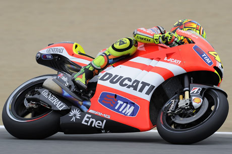 Nicky Hayden e Valentino Rossi partiranno dalla terza fila dello schieramento di partenza del Gran Premio di Laguna Seca. Il pilota italiano oggi ha realizzato in settimo tempo alla guida della Desmosedici GP11.1, eguagliando la sua miglior qualifica stagionale fatta in Catalunya, mentre Nicky Hayden ha ottenuto il nono tempo con la GP11. Il pilota americano infatti, nonostante ieri fosse stato leggermente più veloce con la nuova versione della Desmosedici, ha deciso di disputare la sua gara di casa con la moto con cui al momento ha più esperienza. Valentino Rossi (Ducati Team) 7° (1’22.235) al termine delle qualifiche sul circuito americano di Laguna Seca ha dichiarato: “questa mattina abbiamo fatto una modifica nel bilanciamento che mi ha permesso di trovare più “grip” con le gomme morbide e un feeling generalmente migliore. Però nel pomeriggio, con più caldo e le gomme dure ho fatto molta fatica e non sono riuscito a ritrovare le stesse prestazioni e lo stesso feeling del mattino. Nel corso del turno siamo riusciti a cambiare ancora le regolazioni e fare un passetto in avanti e, quando abbiamo montato le morbide, abbiamo fatto un tempo sufficiente per la terza fila. La settima posizione eguaglia anche la migliore qualifica di questa stagione. Era il nostro obiettivo, poter partire più avanti del solito ma per la gara dobbiamo migliorare ancora il nostro passo con le gomme dure perché facciamo un po’ troppa fatica, dietro scivola molto. Stiamo lavorando molto, siamo concentrati, vedremo domani se riusciremo a fare ancora un passo in avanti”.