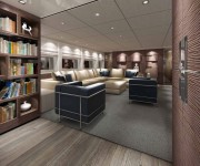 In particolare la cabina dell’armatore è un monovolume open space con doccia compenetrata ed un angolo studio a destra nave; è dedicata invece maggiore privacy all’area toilet e lavabo.