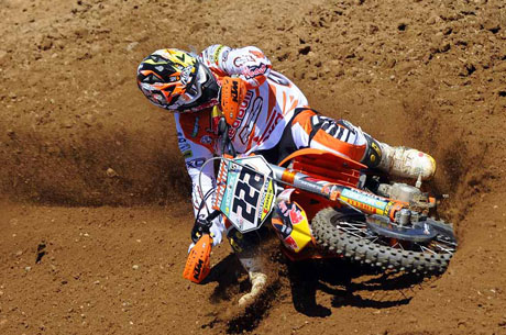 Tony Cairoli, vince, domina, stacca gli avversari nel Gp del Belgio disputato sulla difficile sabbia di Lommel e festeggia la vittoria numero 41 davanti a tanti tifosi che hanno sventolato per tutta la gara la bandiera speciale di Tony 222: tricolore con foto di Tony regalata proprio dal pilota della KTM il sabato nel paddock. È stato il protagonista incontrastato della gara: è partito davanti ed scivolato in entrambe le manche, perdendo posizioni, per poi rimontare e concludere solitario sotto la bandiera a scacchi. Un weekend dunque perfetto per il campione del mondo in carica che dopo avere vinto la manche di qualifica del sabato si è ripetuto nelle due sfide della domenica, aumentando così il vantaggio in classifica nei confronti di Desalle, ora staccato di 52 punti. Caduto al primo giro, dopo avere conquistato l’hole shot, Tony, nella prima manche, ha dovuto recuperare su Frossard e su Desalle. Ha passato il francese della Yamaha al secondo giro, che non si è dato per vinto ripassandolo in seguito, e poi di nuovo all’undicesimo. Una volta secondo, Tony, è andato all’inseguimento di Desalle e a un minuto dalla fine con un sorpasso al cardiopalma (ha affiancato il belga, lo ha passato all’atterraggio da un salto con la moto di traverso) si è portato al comando.