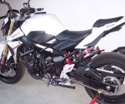Per donare un assetto più sportivoe più controllato sono state scelte molla K=1.0Kg/mm, con un olio più viscoso,che permette di avere una moto più “sostenuta” nella parte inizialedell’escursione, ma che lavora bene anche verso il finecorsa, mantenendoun ottimo controllo e sensibilità dell’avantreno.