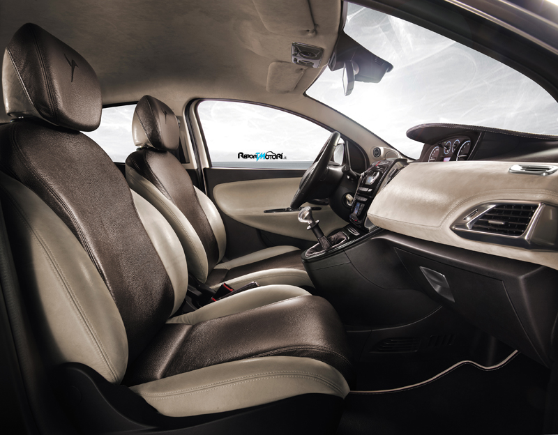 Infine, in perfetta sintonia con gli esterni, il trattamento “eco-chrome” ritorna all’interno sulle cornici delle bocchette, sulla maniglia del cassetto, sulle leve apri-porta, sulle razze del volante e sulla cornice del cambio. Quest’ultimo, poi, è reso ancora più esclusivo da un pomello realizzato in metacrilato con effetto cristallo che, proprio come un prezioso gioiello, rinvia al naming della show-car Lancia.
