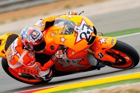 Dalla griglia di partenza del Gran Premio de Aragón scatta bene Ben Spies (Yamaha Factory Racing) che si mette subito al comando seguito da Pedrosa (Repsol Honda), Stoner (Repsol Honda) e Lorenzo (Yamaha Factory Racing), mentre esce di scena dopo solo poche curve il rookie Karel Abraham (Cardion AB Motoracing) costringendo Randy De Puniet (Pramac Racing) ad uscire largo per evitare l’impatto. Un altro grande protagonista abbandona la prova a seguito di un incontro ravvicinato con l’asfalto: si tratta dell’italiano Andrea Dovizioso (Repsol Honda), che deve così dire addio in anticipo alla terza gara in terra spagnola.