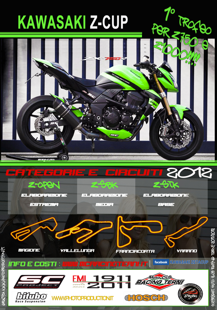 L’azienda lombarda SC-Project è inoltre partner tecnico del neonato Trofeo Z-CUP 2012, interessante iniziativa che vedrà impegnate le Z750 e Z750R in un trofeo che si disputerà nei circuiti di Magione, Franciacorta, Varano e Vallelunga. SC- Project fornirà, a richiesta, vari step di impianti di scarico, dal solo silenziatore al più tecnico e prestazionale 4-2-1 in full titanio con terminale GP M2 per chi desidera le massime prestazioni, con un impianto di derivazione mondiale Moto2.