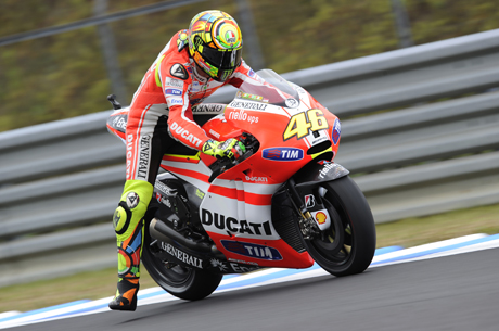 Valentino Rossi (Ducati Team) 7° (1’46.467): “Diciamo che questo sabato possiamo considerarci abbastanza soddisfatti, anche se comunque si tratta di un settimo posto, una posizione che non può esaltarci. Però sono riuscito a guidare un pochino meglio la moto, turno dopo turno, e anche questa mattina abbiamo migliorato il setting in un modo che mi ha permesso, in qualifica, di essere più veloce. Qui a Motegi, rispetto alle gare precedenti, abbiamo modificato il bilanciamento dei pesi e adesso riesco a guidare in maniera più naturale, anche se ancora non come vorrei. Il nostro obiettivo era arrivare a girare in 1’46.5 e ci siamo riusciti quindi direi che abbiamo lavorato bene. Inoltre il nostro passo con gomme da gara non è male, non siamo lontani da Spies e Simoncelli. Speriamo di fare una buona partenza e poi vedremo. Speriamo anche che non piova, io vorrei una gara asciutta ”.