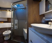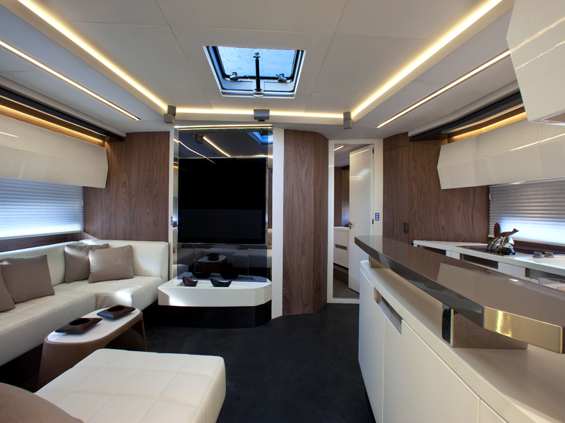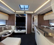 Il suo profilo e l’aggressivo parabrezza incastonato nel top in carboresina caratterizzano Epica 58 al primo impatto. Il pozzetto risulta composto di due aree: quella scoperta ruota intorno ad un ampio divano ad “U” trasformabile in prendisole o tavolo , da quest’area si accede inoltre alla cabina marinaio; quella coperta comprende la postazione di guida con poltrone individuali regolabili, un divano ed una cucina. Le due aree possono essere separate da una struttura apribile in cristallo. Il layout interno prevede la presenza di tre cabine letto con tre bagni; la spaziosissima cabina armatoriale centrale ha il testa letto verso il centro barca ed assicura ancora più comfort e stabilità. Finiture sobrie ed esclusive rendono gli spazi interni accoglienti ed eleganti. Epica 58 è motorizzata con due Volvo Penta IPS‐900 da 700 HP ciascuno che, grazie allo studio delle linee d’acqua della carena, garantiscono prestazioni, affidabilità e consumi ridotti con un comfort di navigazione senza eguali.