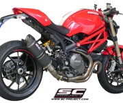 La nota Factory Lombarda SC-Project, giunta al terzo anno consecutivo in qualità di Official Technical Supplier del Team Ducati Pramac Racing MotoGP, presenta un terminale di scarico specifico per la nuova Ducati Monster 1100 EVO, la prestazionale naked bicilindrica di 1079 cm3 made in Borgo Panigale. Studiato sia in ambito estetico che prestazionale lo scarico SC-Project ha un’inclinazione che segue perfettamente il codone, garantendo un aspetto racing e slanciato al posteriore della moto, alleggerendone notevolmente la vista laterale. Il silenziatore è disponibile in versione ovale con fondello in fibra di carbonio, con corpo in titanio o in inox nero satinato e raccordo specifico da 60mm per garantire il massimo delle prestazioni. Notevole è l’alleggerimento di peso, si passa infatti dai 5,8 kg del terminale originale ai soli 2,1 kg del terminale ovale SC-Project con un risparmio netto di ben 3,7 kg. L’aumento delle prestazioni di coppia e potenza massima è notevole, pari a oltre 4 cv ai bassi e medi regimi e di oltre 1,4 cv agli regimi motore, caratteristiche che migliorano il feeling di guida e la prontezza nella risposta nella fase di accelerazione.