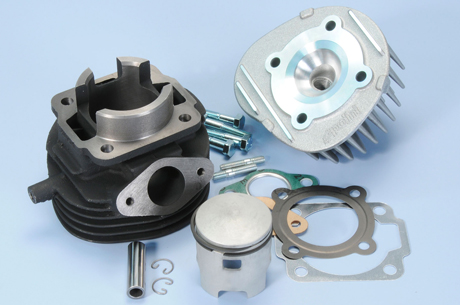 Polini rinnova il più famoso dei kit per la Vespa 50 con alesaggio diametro 47 – 50 – 55. Principale caratteristica è la nuova testa fusa in conchiglia. Ha un moderno disegno della cupola che la rende molto più robusta permettendo di avere una banda di squish perfetta e di posizionare la candela a filetto lungo centralmente rispetto alla camera di scoppio. L’alettatura è maggiorata per avere la miglior dispersione al calore e la guarnizione della testa è prodotta in acciaio siliconato (non presente sulla Vespa originale) per mantenere il massimo della tenuta alla compressione tra testa e cilindro.