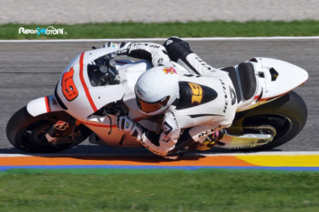 Dopo l’accordo raggiunto per la stagione 2012, Alvaro Bautista è sceso in pista, a Valencia, con la Honda RC212V del Team San Carlo Honda Gresini. E’ stata una prima presa di contatto in attesa dei test invernali che si svolgeranno sul circuito di Sepang dal 31 gennaio al 2 febbraio e nel corso dei quali avrà la possibilità di portare in pista la Honda RC213V con motore 1000, “punta di diamante” della casa giapponese per la stagione 2012. Il pilota spagnolo ha effettuato 55 giri facendo segnare come miglior tempo 1’ 33” 814 Una giornata di test per prendere confidenza con la Honda, provare le 2 gomme Bridgestone 2012 a disposizione e trovare l’armonia con il suo nuovo Team. Un test che non doveva essere affatto indicativo ma che ha creato soddisfazione da ambo le parti, per l’intesa emersa, prima della lunga sosta invernale. Una pausa necessaria per ricaricare anima e spirito ed essere pronti per affrontare, con determinazione, la nuova sfida.