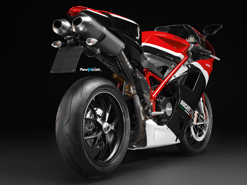 Gli elementi iconici delle moto Campioni del Mondo, come i doppi silenziatori sotto-sella e il forcellone monobraccio, il telaio a Traliccio, le linee eleganti della carena racing e l’ammortizzatore di sterzo, sono stati tutti mantenuti in quanto parti integranti del ‘DNA’ della 848, tuttavia gli ingegneri Ducati sono riusciti a proporre specifiche ancora più avanzate per garantire prestazioni di guida esemplari sia per affrontare il traffico cittadino che per godere la potenza e l’agilità di questa moto in pista.