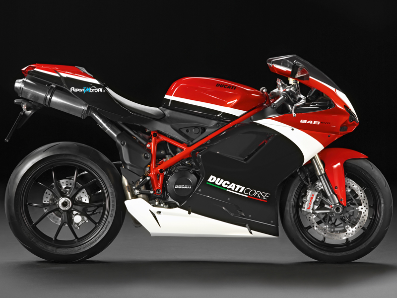 La Ducati 848EVO, rappresenta la massima evoluzione della Superbike Ducati di media cilindrata, il primo passo per chi vuole avvicinarsi, nel modo più emozionante e sicuro, al mondo delle Supersportive Ducati. Il 2012 segna l’arrivo di una versione speciale, l’848EVO Corse Special Edition equipaggiato di serie con il Ducati Traction Control, Ducati Quick Shift, sospensione posteriore Öhlins e dischi freno da 330mm il tutto coronato da una livrea con i colori ufficiali di Ducati Corse. Il “trattamento EVO” applicato alla 848 si è concretizzato in un incremento di potenza di ben 6 CV, che ha portato così a 140 (103kW) i cavalli disponibili per questo modello. Altrettanto significativa e stata l’evoluzione della coppia, che arriva a 10kgm, garantendo un’erogazione ancora più precisa, fluida ed estremamente godibile. La combinazione tra la leggendaria ciclistica ‘peso piuma’ della 848 (168Kg) e l’efficace tecnologia delle pinze Monoblocco Brembo, offrendo prestazioni frenanti assolutamente impensabili e capaci di offrire un nuovo riferimento assoluto nella categoria.