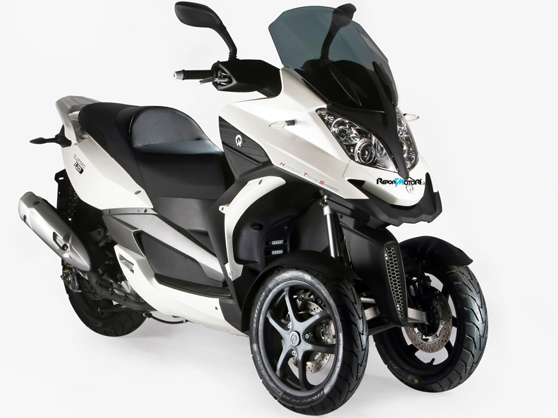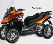 La nuova idea di mobilità che è alla base del tre ruote è frutto di soluzioni tecniche ed innovative mai applicate in queste tipologie di veicoli. La struttura della sospensione anteriore è a quadrilatero articolato, soluzione che consente una perfetta cinematica della sospensione assorbendo le sollecitazioni che normalmente vengono trasmesse al manubrio. Come risultato si ottiene una guida fluida e precisa. Ciò che rappresenta il vero cuore del 350D è il rivoluzionario sistema di sospensione oleo-pneumatica, l’HTS (Hydraulic Tilting System), che ne caratterizza il comportamento per stabilità, manovrabilità, sicurezza e divertimento (vedi immagini HTS allegate al press kit). Il sistema è composto di due cilindri idraulici ed un cilindro “molleggio”: i primi collegano il telaio ai bracci oscillanti delle ruote, mentre il secondo assolve alle funzioni della classica molla-ammortizzatore. I cilindri sono in collegamento tra loro attraverso una valvola che permette il flusso dell’olio in risposta alle sollecitazioni provenienti dalle asperità del terreno e dalla tipologia di guida. Inoltre il gas, compresso nei cilindri idraulici, consente di aiutare il pilota a sostenere il veicolo trasmettendo sicurezza e affidabilità. La chiusura della valvola permette di mantenere il parcheggio stabile del veicolo anche senza l’utilizzo del cavalletto centrale.