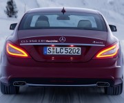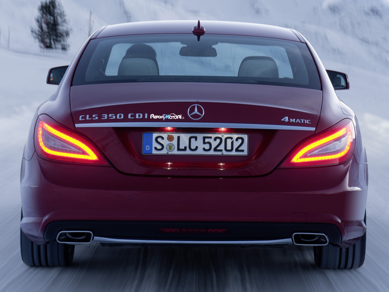 Una possente linea di cintura sull’asse posteriore sottolinea il carattere atle-tico della nuova CLS. I passaruota sporgenti ricordano le muscolose zampe di un felino pronto a scattare. Completano le fiancate gli ampi gruppi ottici posteriori con tecnologia LED che fungono da elemento di raccordo alla co-da. La forma è sottolineata dalla larga linea delle spalle ben evidente da die-tro sulla quale poggia otticamente il tetto piatto del Coupé. Un largo listello in metallo conferisce alla coda una personalità inconfondibile.