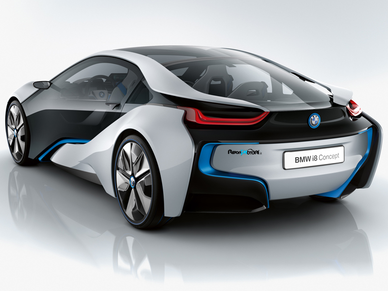 Con BMW i il BMW Group persegue un approccio olistico: offrendo dei concetti automobilistici su misura, della sostenibilita lungo l’intera catena di valore aggiunto e dei servizi di mobilita integrativi, BMW i definisce ex novo il termine di mobilita individuale.Grazie al proprio affascinante concetto, la BMW i8 Concept simbolizza la realizzazione dell’idea di un’automobile sportiva moderna che rispetta anche i principi della sostenibilita. Nell’ambito del proprio innovativo concetto Plug-in, la BMW i8 Concept combina l’elettromotore modificato della BMW i3 Concept sull’asse anteriore con un motore tre cilindri a combustione interna high-performance montato sull’asse posteriore. Insieme, i due motori mettono a disposizione la performance di un’automobile sportiva, abbinandola al consumo di carburante di un’utilitaria. Nessun’automobile equipaggiata con un motore endotermico di questo livello di potenza e attualmente in grado di offrire un’accelerazione da 0 a 100 km/h in meno di 5 secondi e un consumo di carburante nel ciclo europeo di 3 litri. Grazie alla grande batteria agli ioni di litio caricabile a una normale presa di corrente, la BMW i8 Concept offre fino a 35 chilometri di autonomia nella guida elettrica. Inoltre, la 2+2 posti accoglie quattro persone, posizionandosi cosi come vettura adatta alla guida di tutti i giorni.