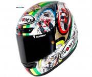 Per rendere onore ad un pilota che rappresenta la storia della MotoGP, la Suomy ha realizzato un casco in tiratura limitata “Loris Capirossi“, un modello che celebra l’uscita di scena dal prossimo Campionato del mondo della MotoGP, del campione italiano, una vita di vittorie merita un casco dedicato, un tributo ad una lunga e brillante carriera e che racconta la storia sportiva di un grande campione.