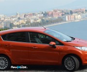 Veloce e molto stabile, la nuova Ford Fiesta in curva manifesta un discreto rollio, mantiene la traiettoria impostata con estrema fedeltà ed anche sullo sconnesso trasmette sempre sollecitazioni molto contenute. La frenata è buona, con una corsa del pedale del freno un pò lunga, la frizione è sufficientemente leggera, così come lo sterzo dotato di servoassistenza.