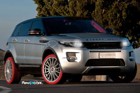 Per la Evoque HFI-R, Marangoni ha realizzato “M-Power EvoRed”, uno speciale set di pneumatici di colore rosso rubino da 20”. In questa versione sperimentale, realizzata appositamente per la Marangoni Evoque HFI-R, sono state utilizzate mescole ad alto contenuto di silice e materiali innovativi che permettono di ridurre al massimo la resistenza al rotolamento e quindi il consumo di carburante.