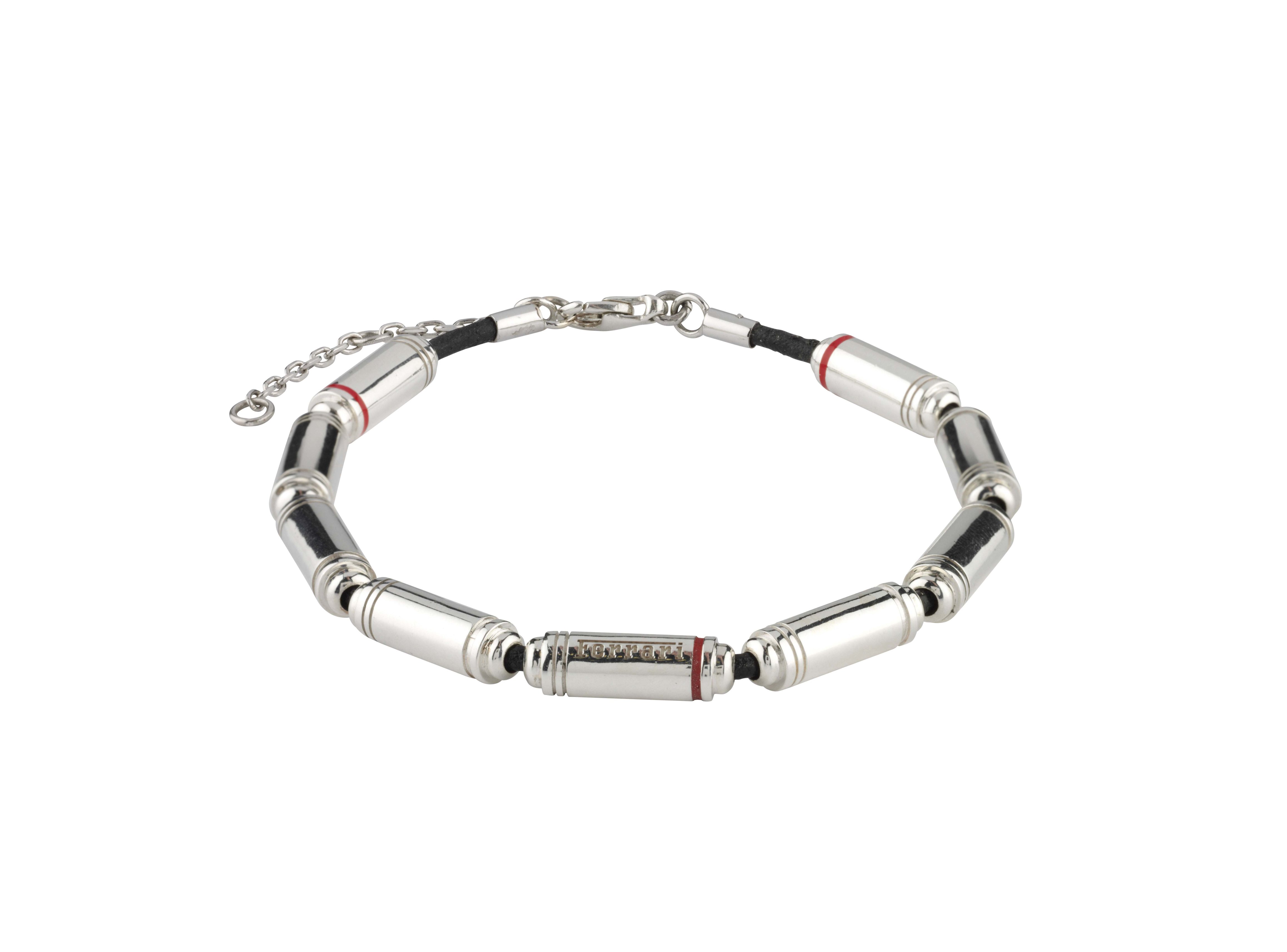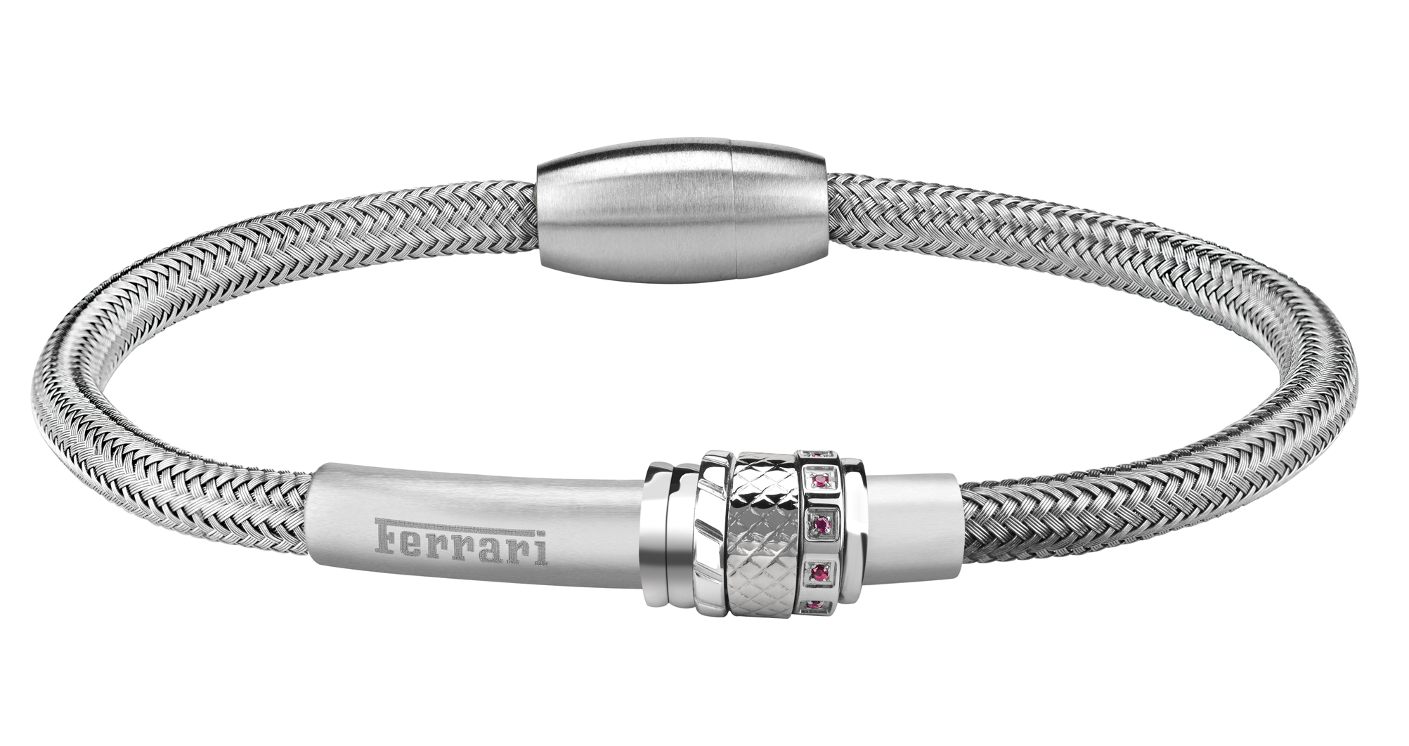 La collezione Ferrari Manufacture by Damiani è dedicata a tutti gli appassionati del Cavallino Rampante e si compone di gioielli ed accessori pensati per un uomo contemporaneo e grintoso. Sono disponibili alcuni dei più eleganti accessori che riportano il famoso logo del cavallino rampante: eleganti gemelli in oro bianco con pavè di diamanti, bracciale in pelle rossa e acciaio, impreziosito da una piastrina in acciaio con l’incisione del logo Ferrari, bracciale in acciaio e pelle ispirato alla vite detta “rivetto” presente nel motore delle auto Ferrari ed infine è disponibile la collezione completamente in acciaio, dal design minimal chic, impreziosita dalla presenza di rubini e diamanti neri incastonati e dall’incisione raffigurante il logo Ferrari.