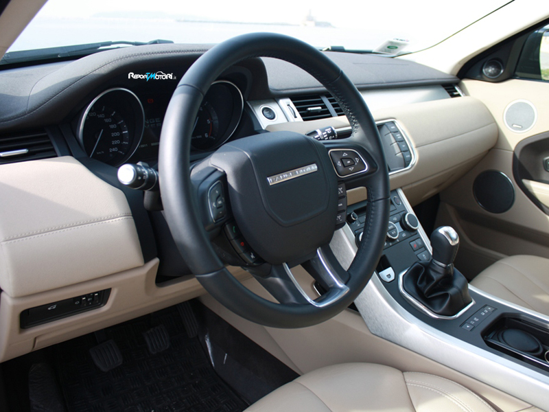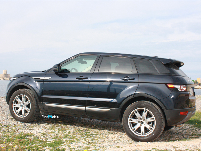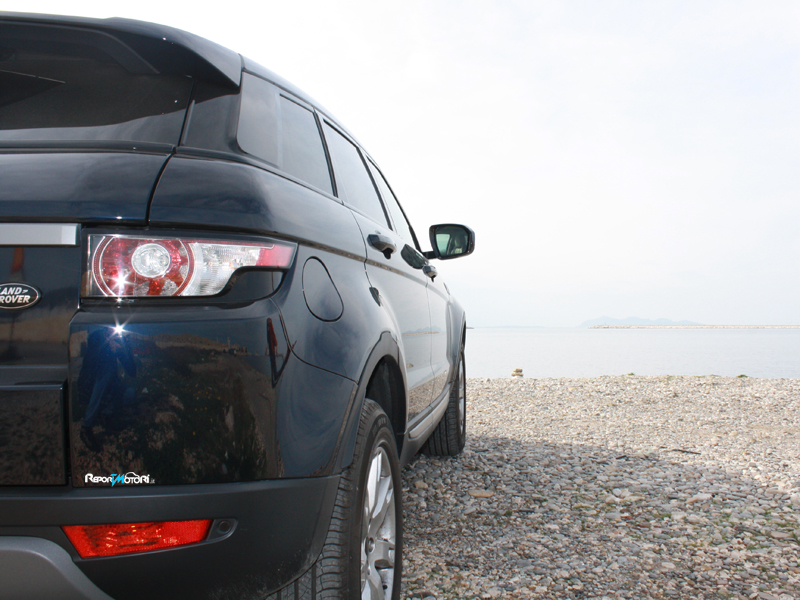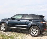 Il fattore distintivo dell’Evoque è la forma atletica. E’ impressa dall’equilibrio con cui si combinano tenuta e affidabilità, alle buone qualità dello sterzo, al rollio ridotto ai minimi termini, alla massa non esorbitante e ripartita in maniera da generare un baricentro basso. Di qualità insospettabile, soprattutto per una Suv, la silenziosità meccanica, l’assenza di vibrazioni nonostante qualche fruscio aerodinamico generato dagli enormi specchietti retrovisori anteriori. La trazione 4×4 della Evoque a controllo elettronico realizzata con la specialista Haldex e il sistema Terrain Response garantiscono la massima trasmissione a terra della potenza in ogni condizione con 5 diverse possibilità di gestione per ogni tipologia di fondo. Completa il bel lavoro di messa a punto un nuovo servosterzo elettrico preciso, rapido nella risposta, capace di far sentire padroni della macchina in ogni momento. Un ventaglio di sistemi che ha permesso di procedere su ogni fondo e con ogni pendenza in assenza di rollio, senza mai avere la sensazione di essere in difficoltà e con un’agilità insospettabile. I 190 cv del 2.2 litri non stupiscono tanto per le prestazioni quanto per la fluidità dell’erogazione, che premia sia l’elasticità sia la propensione a sostenere con determinazione le fasi d’allungo.