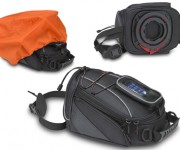 Due borse da serbatoio, differenti nelle dimensioni ma entrambe dotate dell’innovativo sistema di fissaggio Tanklock, brevettato da GIVI, con flangia “dedicata” da fissare al tappo carburante che si accoppia con un click al fondo della borsa (l’elenco delle moto compatibili sul sito www.kappamoto.com). La borsa TK765, perfetta per le sportive, è un compatto contenitore estensibile (fino a 10 litri), con due tasche esterne + vano porta smartphone/navigatore; la tracolla la trasforma in borsello. La TK763 è più capiente e meglio si adatta ad un utilizzo turistico. Prezzi al pubblico: TK765 – 68,50 euro , TK763 – 85 euro