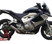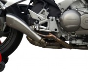 La nuovissima Crossrunner sposa le linee dell’ incredibile Hydroform per esaltare le sue forme e concedersi totalmente agli occhi degli osservatori. Il nuovo sistema di scarico made in HP Corse, incontrando la nuova creazione della casa alata, si esalta, come mai aveva fatto prima, grazie ad un sistema slip-on provvisto di raccordo settoriale composto da 15 pezzi saldati a mano con tecnologia Tig (Tungsten Inert Gas) capace di garantire un perfetto deflusso dei gas di scarico. Le saldature esterne, su indicazione dello stesso cliente, potranno essere satinate oppure lasciate “a vista” per conferire al tutto un look “hand made” di grande effetto. Lo scarico, grazie a quest’ opera d’arte puramente artigianale, viene riposizionato a centro moto moto per formare un insieme unico con il blocco motore. Il baricentro è ottimizzato ed il retrotreno risulterà assai più snello ed esteticamente appagante. Questo nuovo impianto nasce nel centro R&D di Bologna grazie alla passione, alla ricerca e alla cura di ogni dettaglio. Il silenziatore è ottenuto mediante idroformatura, ha curve bellissime e un corpo in acciaio inox senza saldature con spessori della lamiera ridotti ai minimi termini ed un peso da record di soli 1.615 gr per la versione omologata con db killer ( meno 4.235 gr. rispetto al silenziatore originale )