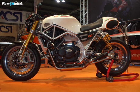 La SF 750 nasce come moto quasi completamente artigianale, esclusiva nei dettagli e totalmente personalizzabile che sa adattarsi ai gusti ed agli stili più disparati, è un concentrato di soluzioni meccaniche d’avanguardia e di raffinatezze tecnologiche costruite intorno ad un “cuore” originale, il bicilindrico parallelo 8V bialbero da 747 cc, ad iniezione elettronica da 85 CV, sul quale i costruttori sono riusciti a mettere le mani dopo la chiusura dello stabilimento Laverda ed il conseguente stop alla produzione dei modelli Strike e Formula che utilizzavano questo propulsore. Derivato dal motore Formula e quindi non solo revisionato, aggiornato, ma modificato nelle sue criticità originali e dotato di scarico con catalizzatore Euro 3, il motore sembra aver trovato nuova vita e si adatta perfettamente allo stile della moto e dell’atelier dove viene realizzata e dove trovano origine progettuale anche molti accessori ricavati dal pieno.