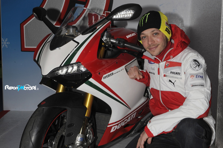 Pubblico, neve e una fiammante Ducati 1199 Panigale, in versione Tricolore esposta all’ingresso del Pala Wrooom di Madonna di Campiglio, hanno accolto l’arrivo di Valentino Rossi e Nicky Hayden, alla ventiduesima edizione di Wrooom Press Ski Meeting. Oggi,martedì 10 Gennaio, i due piloti Ducati saranno i protagonisti delle conferenze stampa della prima giornata dell’evento che da tradizione apre simbolicamente la stagione motoristica sportiva italiana e internazionale che proseguirà mercoledì con Filippo Preziosi (Direttore Generale Ducati Corse) e Stefano Domenicali (Team Principal Ferrari). Giovedì sarà il turno dei piloti Ferrari e venerdì la giornata conclusiva con la spettacolare esibizione dei piloti in kart e auto sul laghetto ghiacciato.
