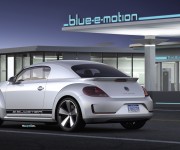 Il guidatore della E-Bugster può visualizzare quanta energia viene richiesta agendo sull’acceleratore grazie a un apposito indicatore di performance. Sono inoltre presenti un indicatore di autonomia e un display su cui viene visualizzato il livello di carica della batteria. Un altro strumento nuovo a bordo della Beetle è l’indicatore di recupero dell’energia. Si tratta, più precisamente, del recupero dell’energia in frenata: non appena il guidatore solleva il piede dal pedale dell’acceleratore e/o effettua una frenata, l’energia cinetica viene convertita in corrente e accumulata temporaneamente tramite la batteria, aumentando così l’autonomia della E-Bugster. La Volkswagen ha scelto di chiamare il sistema di trazione elettrica Blue-e-Motion. Già nel 2013, questa stessa denominazione designerà tra l’altro anche una Golf di serie.