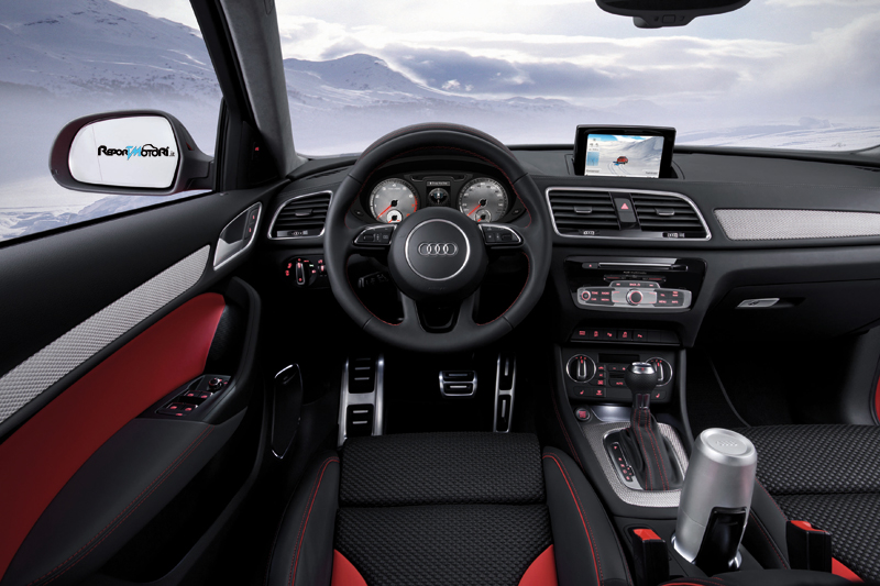 Con la nuova Q3 Vail, Audi offre una rivoluzionaria interpretazione del concetto di SUV. La nuova vettura è adatta a un pubblico giovane, amante degli sport invernali, quali sci e snowboard. La Audi Q3 Vail è un SUV compatto, sportivo e robusto, forte di numerose dotazioni pratiche e intelligenti ma al contempo elegante, con elementi di design unici. La Audi Q3 Vail monta cerchi a 5 razze in misura 8,5Jx20. Le superfici visibili sono verniciate, come la griglia single frame, di un colore chiaro lucido, mentre quelle interne in color quarzo opaco. Gli pneumatici offroad sono in misura 255/45. Rispetto agli altri modelli della gamma, le carreggiate anteriore e posteriore risultano 40 mm più larghe e la carrozzeria 30 mm più alta. Anche il posteriore della Vail presenta soluzioni caratteristiche, quali i due terminali di scarico, integrati in corrispondenza del diffusore e della protezione sottoscocca. I tre colori che caratterizzano l’abitacolo della Audi Q3 Vail (nero, grigio e rosso) accentuano ulteriormente l’esclusività e l’eleganza sportiva della vettura. Il cielo dell’abitacolo viene proposto in Alcantara grigio titanio, mentre numerosi elementi degli interni, tra cui anche la tappezzeria, sono di colore nero. I tappetini neri agugliati sono bordati da sottili finiture in pelle/velluto color rosso.