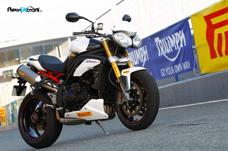La nuova Triumph Speed Triple R, recentemente presentata alla stampa internazionale in occasione di EICMA, utilizzerà gli pneumatici Pirelli Diablo Supercorsa SP, derivati direttamente dalla versione SC (Special Compound) con lo stesso battistrada utilizzato nella Superstock1000 FIM Cup. La misura degli pneumatici è 120/70 ZR17 per l’anteriore e 190/55 ZR17 al posteriore e sono in grado di offrire performance pure da gara con tutti i vantaggi dell’utilizzo su strada.