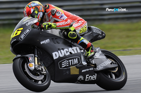 La prima sessione di test invernali si è chiusa oggi a Sepang con una giornata dalle condizioni un po’ variabili. Caldissimo nelle ore centrali e un acquazzone pomeridiano che ha fatto chiudere i lavori in anticipo, alle 17:25. Nicky Hayden si era fermato prima, verso mezzogiorno, dopo aver provato a guidare con una fasciatura molto stretta della spalla sinistra dolorante. Non avendo comunque la forza necessaria per spingere forte, d’accordo con la squadra, ha preferito smettere in anticipo. Valentino Rossi invece ha continuato fino all’arrivo della pioggia ed ha chiuso con il 5° miglior tempo, abbassando di un secondo la sua prestazione di ieri. Il pilota italiano si è detto soddisfatto del primo test con la GP12.