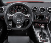 Il single-frame distingue la TT RS plus al primo sguardo, grazie alla finitura lucida color antracite e alla cornice in look alluminio. I gusci degli specchietti retrovisori sono realizzati in CFRP (fibre plastiche rinforzate con fibra di carbonio). I due terminali ovali sfoggiano una finitura nera e una speciale valvola intensifica le sonorità di scarico. Il vano motore, infine, è arricchito dalle componenti in carbonio, mentre il pomello del cambio sfoggia la dicitura TT RS plus.
