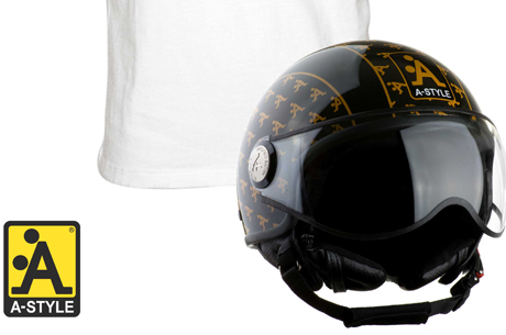 Per la nuova stagione A-Style torna più irriverente e più carica che mai! Temi ben precisi e materiali di ottima qualità sono le caratteristiche dell’ uomo PE 2012: la collezione sarà all’insegna del colore, del gioco, dell’ironia e dell’originalità, dando sempre la caccia al giusto stile, per essere al top in ogni occasione! Casco demi-jet con calotta lucida e logo A-Style.