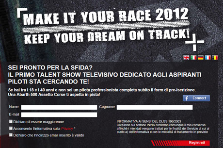 La caccia al sogno è ufficialmente aperta, le pre-iscrizioni continueranno per tutto il mese di febbraio sul nuovissimo sito Make it your race unici pre-requisiti sono avere tra i 18 e i 40 anni e non essere un pilota professionista.