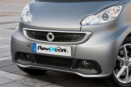 Il logo satinato è inserito all’interno della rinnovata mascherina anteriore, impreziosita anche da una sportiva finitura a nido d’ape. Le nuove prese d’aria all’interno del paraurti formano un corpo unico e conferiscono a smart fortwo un volto più dinamico e grintoso. Le nuove luci diurne a LED (disponibili a richiesta) presentano un nuovo design orizzontale.
