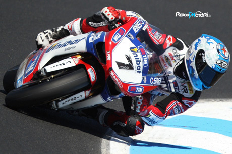 “Abbiamo lavorato bene. A parte la scivolata ovviamente; ho perso il posteriore, forse a causa della gomma consumata, e non sono riuscito a stare in pista. Pero tutto sommato sono stato fortunato a non finire contro il piccolo muro che mi sono trovato davanti! Sono tornato nel box, abbiamo sistemato il manubrio leggermente danneggiato, ho cambiato la gomma, cogliendo l’opportunita per provare la gomma piu stretta. Abbiamo visto che la gomma larga offre dei vantaggi in termini di durata; oggi abbiamo voluto lavorare sulle gomme per capire qualche potrebbe essere quella piu indicata per le gare. Sono soddisfatto del lavoro svolto fino ad ora. Phillip Island è una pista dove mi trovo bene con la Ducati e penso che possiamo approfittare di questo fattore”.