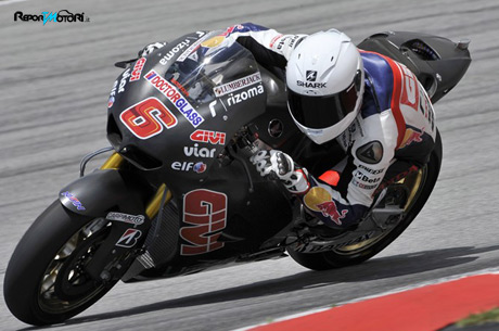 Tempo di lettura: < 1 minuto Sepang, 28 Feb: quattro settimane dopo la prima uscita ufficiale del 2012, i Team ed i piloti della classe regina sono nuovamente tornati a Sepang (Malesia) per il secondo turno di prove pre campionato prima del “calcio d’inizio” previsto per il 9 Aprile in Qatar. Il primo giorno di lavoro per il debuttante LCR Stefan Bradl ed i suoi colleghi èstato segnato da un alto livello di umidità e da uno scroscio di pioggia tropicale tipico della zona con il Tedesco che ha fatto segnare il decimo miglior tempo (2’03.820) al 16° giro di 31 mentre Stoner si piazza nuovamente in cima alla classifica (2’01.761). Stefan Bradl ha dichiarato: “oggi le condizioni dell’asfalto non erano buonissime a causa della pioggia ma se non altro abbiamo fatto il nostro primo long run sul bagnato verificando così il mio feeling con le gomme da bagnato. Ho girato due secondi più lento rispetto al primo test ma in queste condizioni ho sfruttato al meglio la moto e ci restano ancora due giorni per proseguire con la messa a punto. Tecnicamente parlando abbiamo comparato la ciclistica della moto uno con la moto due e abbiamo lavorato anche sulla sospensione posteriore; inoltre a livello elettronico abbiamo provato un nuovo software anti impennata”.