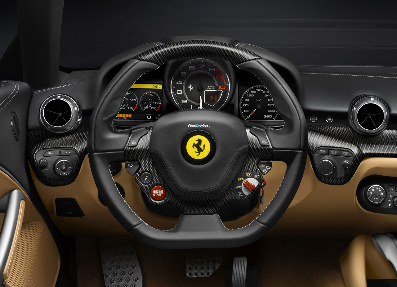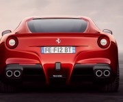 Il design della F12berlinetta, frutto della collaborazione tra Centro Stile Ferrari e Pininfarina, si basa sul perfetto equilibrio tra la massima efficienza aerodinamica e l’eleganza delle proporzioni interpretando in chiave originale e innovativa i canoni della bellezza tipici delle Ferrari a motore V12 anteriore. Una coupé dalla linea aggressiva e filante che nonostante la compattezza delle dimensioni esterne offre un elevato livello di comfort e abitabilità. Gli inediti interni, in pelle Frau, coniugano dettagli raffinati di alta artigianalità con gli elementi essenziali della sportività. Al centro della plancia, leggera e asciutta, spiccano gli innovativi aeratori di chiara ispirazione aereonautica realizzati in carbonio e lega di alluminio. Gli spazi sono stati ottimizzati per offrire una grande fruibilità anche grazie alla panchetta posteriore collegata direttamente al vano bagagli, quest’ultimo facilmente accessibile dal portellone posteriore. La centralità del pilota, caratteristica comune a tutte le Ferrari, è infine ribadita dall’interfaccia uomo-macchina, con tutti i comandi raccolti attorno a chi guida, per garantire la massima ergonomia e un’esperienza di guida altamente emozionante.