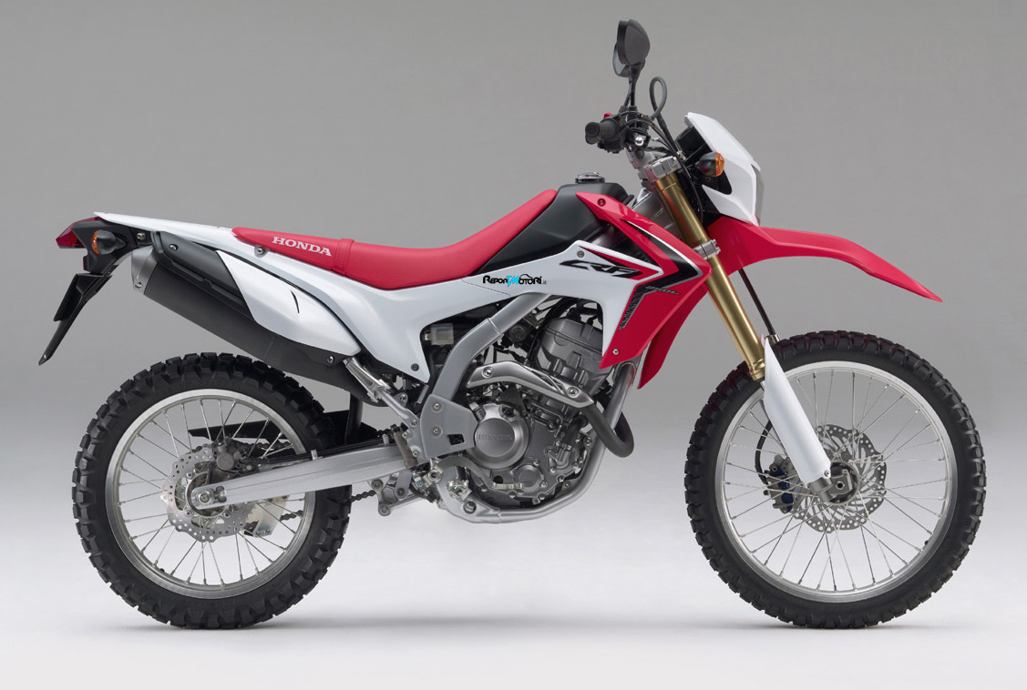 Al Tokyo Motor Show dello scorso novembre una nuova enduro Honda ha fatto bella mostra di sé: la CRF250L. L’interesse del pubblico per questa grintosa monocilindrica off-road ha portato alla decisione di commercializzarla anche in Europa a partire dall’estate 2012. La CRF250L è una divertentissima moto da fuoristrada adatta anche all’uso quotidiano più intenso. Come le enduro della mitica serie XL degli anni Ottanta, la CRF250L garantisce grande facilità di guida, un eccezionale divertimento in off-road e tutta l’affidabilità Honda. Il suo motore monocilindrico bialbero a 4 valvole da 249cc, alimentato a iniezione elettronica e raffreddato a liquido, è incastonato in un rigido telaio perimetrale in tubi d’acciaio a sezione ovale, accoppiato a un forcellone in alluminio con sospensione Pro-Link e a un forcella rovesciata. Ottimi anche i freni, con un impianto a doppio disco dal profilo a margherita. L’incredibile rapporto qualità/prezzo e i bassissimi costi di gestione fanno della CRF250L una enduro “dual purpose” senza paragoni.