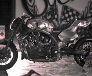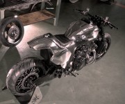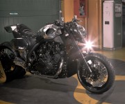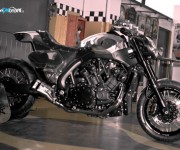 E così, dopo le spettacolari versioni dei maestri Roland Sands, Ludovich Lazaret e Marcus Walz ammirate in anteprima mondiale al Salone di Milano, è ora il turno degli italianissimi Abnormal Cycles, officina brianzola capitanata da Samuele Reali entrata di fatto nell’Olimpo dei customizer grazie alla loro versione di Yamaha VMAX Hyper Modified. Anche lo staff di Abnormal Cycles ha giudicato le performance del V4 Yamaha da 1.700cc più che sufficienti, il motore non ha infatti subito sostanziali modifiche ad esclusione dello scarico, realizzato “ad hoc” dallo specialista del settore Zard: un quattro in due studiato per accoppiarsi perfettamente alla nuova linea della moto. Esteticamente il motore è stato impreziosito dai nuovi carter ricavati dal pieno realizzati da F.G.R., che firma anche i comandi a pedale e le massicce piastre forcella.