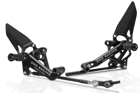 CNC Racing presenta una serie limitata di pedane per Ducati 848-1098-1198 lavorate dal pieno in Ergal 7075. Il rapporto tra design e tecnologia che identifica questo prodotto è creato dalla ricerca di un prodotto di qualità, garantendo così una eccezionale durata nel tempo. Tutti componenti delle pedane sono ricavati dal pieno con lavorazioni Cad-Cam, con i cuscinetti ad alta qualità che garantiscono un’ottima resistenza anche durante le più forti sollecitazioni in pista e su strada. Unico componente in carbonio è il battitacco che garantisce leggerezza ed estetica racing. Curatissima anche la valigetta con cui vengono consegnate ai nostri miglior clienti. Le pedane totalmente regolabili, dispongono di poggiapiedi e puntalini leve pieghevoli.