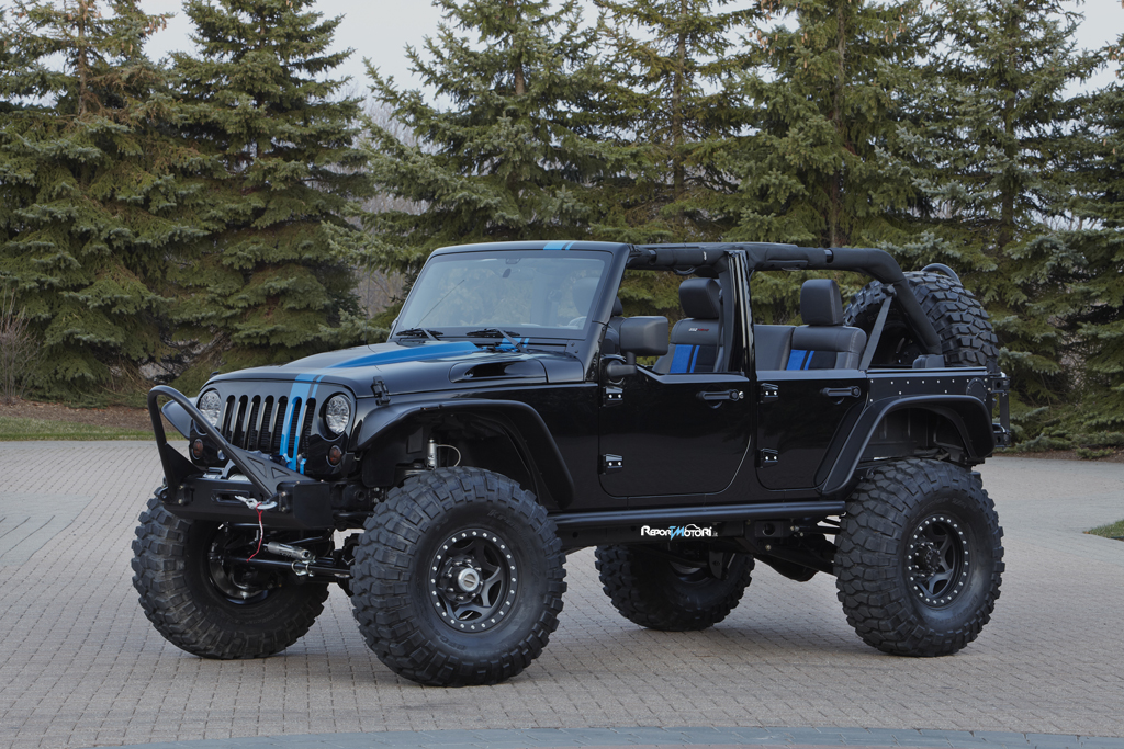 Per preparare Jeep Wrangler Traildozer ad affrontare gli estremi tracciati off-road del Moab, il team di design Jeep ha collaborato con il team di ingegneri di American Expedition Vehicles (AEV). Partendo dal nuovo allestimento Dozer Yellow di Jeep Wrangler Rubicon, il team ha equipaggiato il concept con il motore da 6,4 litri V8 HEMI da 470 CV di potenza abbinato al cambio manuale a sei marce Getrag 238. La potenza è garantita da assali Dana 44 specifici della versione Rubicon con rapporto al ponte di 4.10 e differenziali autobloccanti elettronici. Per montare gli pneumatici da 37 pollici Mickey Thompson Baja Claw sui cerchi a cinque razze Mopar Classic, è stato istallato un kit di sospensione AEV Dualsport RS che garantisce un’altezza da terra di oltre 7 cm. Per assicurare la massima protezione nella guida off-road, il concept presenta paraurti anteriore e posteriore Mopar e protezioni posteriori. Ulteriori caratteristiche comprendono lo speciale cofano a dispersione di calore, il kit mezze porte Mopar ed il verricello Mopar/Warn 9.5 Cti. Gli interni del concept Jeep Wrangler Traildozer prevedono sedili in pelle AEV ‘F-1’ e tappetini Mopar.