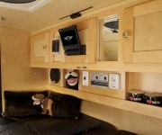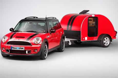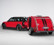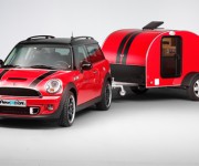 Il modello Caravan “Cowley” offre tutto quello che serve: due comodi posti letto, un fornellino a gas a doppia fiamma, un serbatoio d’acqua con pompa e possibilità di sciacquo, un pannello solare per caricare le batterie di bordo e un collegamento elettrico di 230 Volt per alimentare il frigorifero e l’impianto TV/DVD e HiFi Stereo. “Il massimo divertimento di guida su una superficie minima”: questo è lo slogan per l’esclusivo domicilio sulle ruote, ispirato naturalmente al principio di utilizzo creativo dello spazio che distingue tutte le vetture MINI. La sua silhouette ricorda le linee ondulate dei pannelli interni delle porte della MINI, le sue porte si contraddistinguono per offrire ad entrambi i lati dei finestrini scorrevoli, simili a quelli utilizzati nella Classic Mini fino al 1969. Il rimorchio dal disegno marcato supera con gli specchietti retrovisori esterni la MINI Clubman di solo 12 centimetri in larghezza e pesa circa 300 chilogrammi in più.