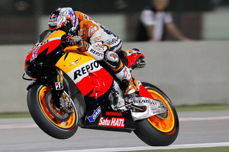 Tempo di lettura: 2 minuti Nelle prime libere ufficiali, sul circuito di Losail (Qatar) nella classe regina trionfa Casey Stoner, che su Repsol Honda decide di partire con il piede giusto. Subito primo posto per l’australiano attuale Campione del Mondo che chiude il suo giovedì con il tempo di 1’56.474s, ancora lontano dalla sua stessa pole position dello scorso anno (1’54.137s), che ricordiamo fu registrata in sella ad una 800cc al limite dello sviluppo. In seconda posizione troviamo, neanche a dirlo, Jorge Lorenzo (Yamaha Factory Racing) che accusa 174 millesimi di secondo, mentre è di buon auspicio trovare in terza posizione il Campione del Mondo 2006 Nicky Hayden, a meno di mezzo secondo dalla vetta (+0.450s). Ben Spies (Yamaha Factory Racing) e Cal Crutchlow (Monster Yamaha Tech3), rispettivamente quarto e sesto portano a tre le Yamaha nelle prime sei posizioni. In mezzo a loro salva la sessione Dani Pedrosa (Repsol Honda)a queasi 7 decimi.