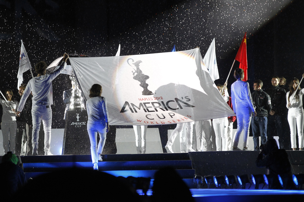 Ha preso poi la parola il sindaco di Napoli, Luigi de Magistris, cha ha augurato Buon Vento agli atleti dei team e ha invitato i napoletani ad apprezzare la restituzione del proprio lungomare alla città:“Ora possiamo sentire l’odore e la voce del nostro mare, oggi più che mai risorsa della rinascita della nostra città – ha ricordato il Primo Cittadino – Questo è l’unico posto al mondo in cui l’ evento si svolge nel cuore della città”. Quindi il saluto di Iain Murray, direttore delle regate dell’AC World Series, che ha ricordato la storia recente, ma straordinaria dell’America’s Cup. E poi è apparsa sul palco, scintillante e preziosa, la Old Mug, posizionata su un piedistallo e ammirata dai velisti dei nove team internazionali che le sfilavano accanto.